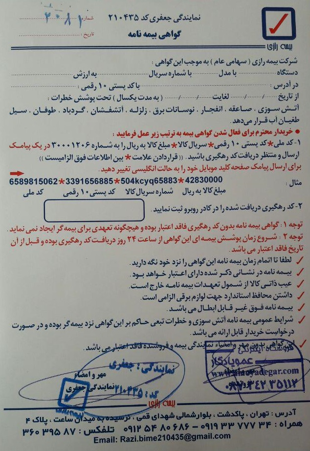 عکس کامل بیمه نامه :